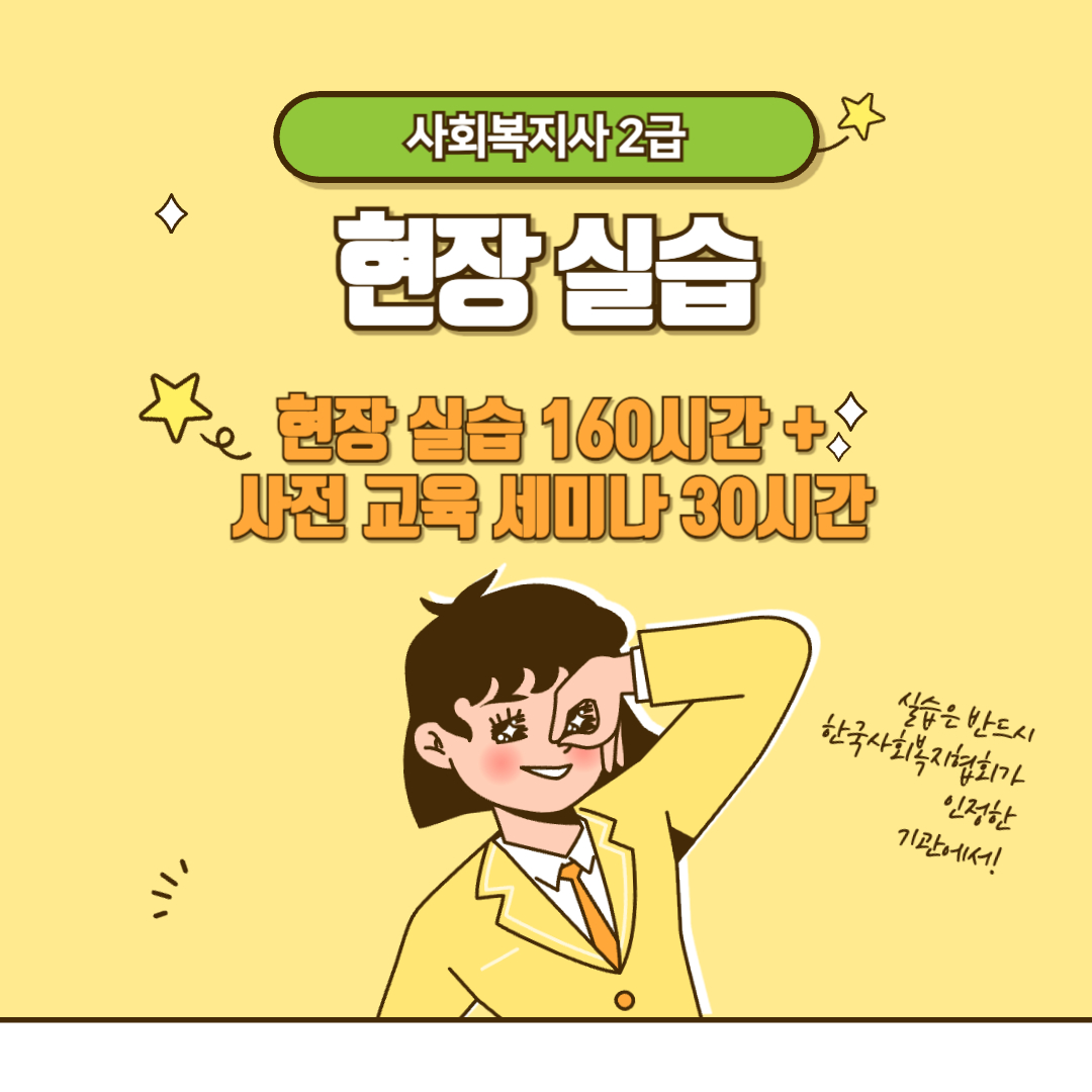 ✔️ 사회복지현장실습이 160시간으로 강화됨