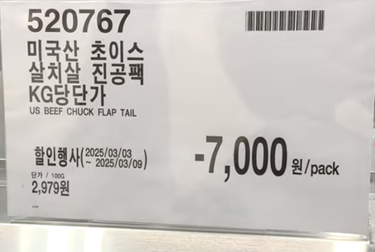 | 미국산 초이스 살치살 진공팩 | 미국산 | 2,979원/100g | -7,000원 할인 | 3월 9일까지 |