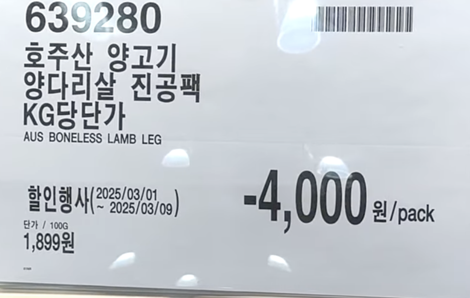 | 호주산 양고기 양다리살 진공팩 | 호주산 | 1,988원/100g | -4,000원 할인 | 3월 9일까지 |