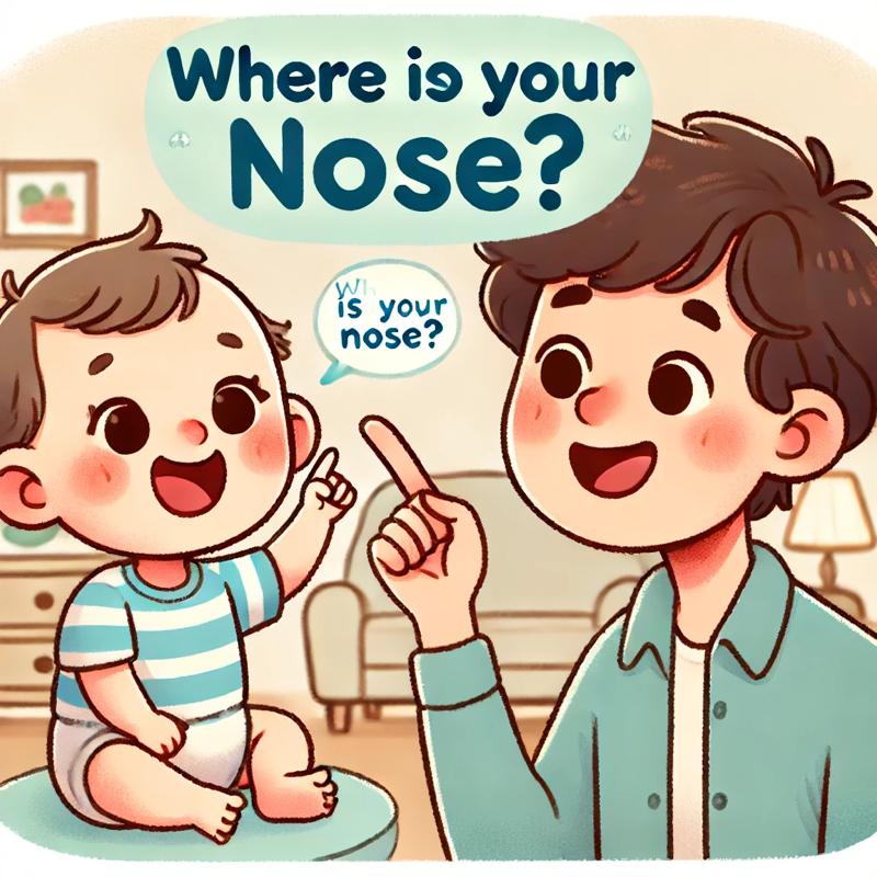 ✔ "코 어디 있어?"라고 물으면 코를 가리킴